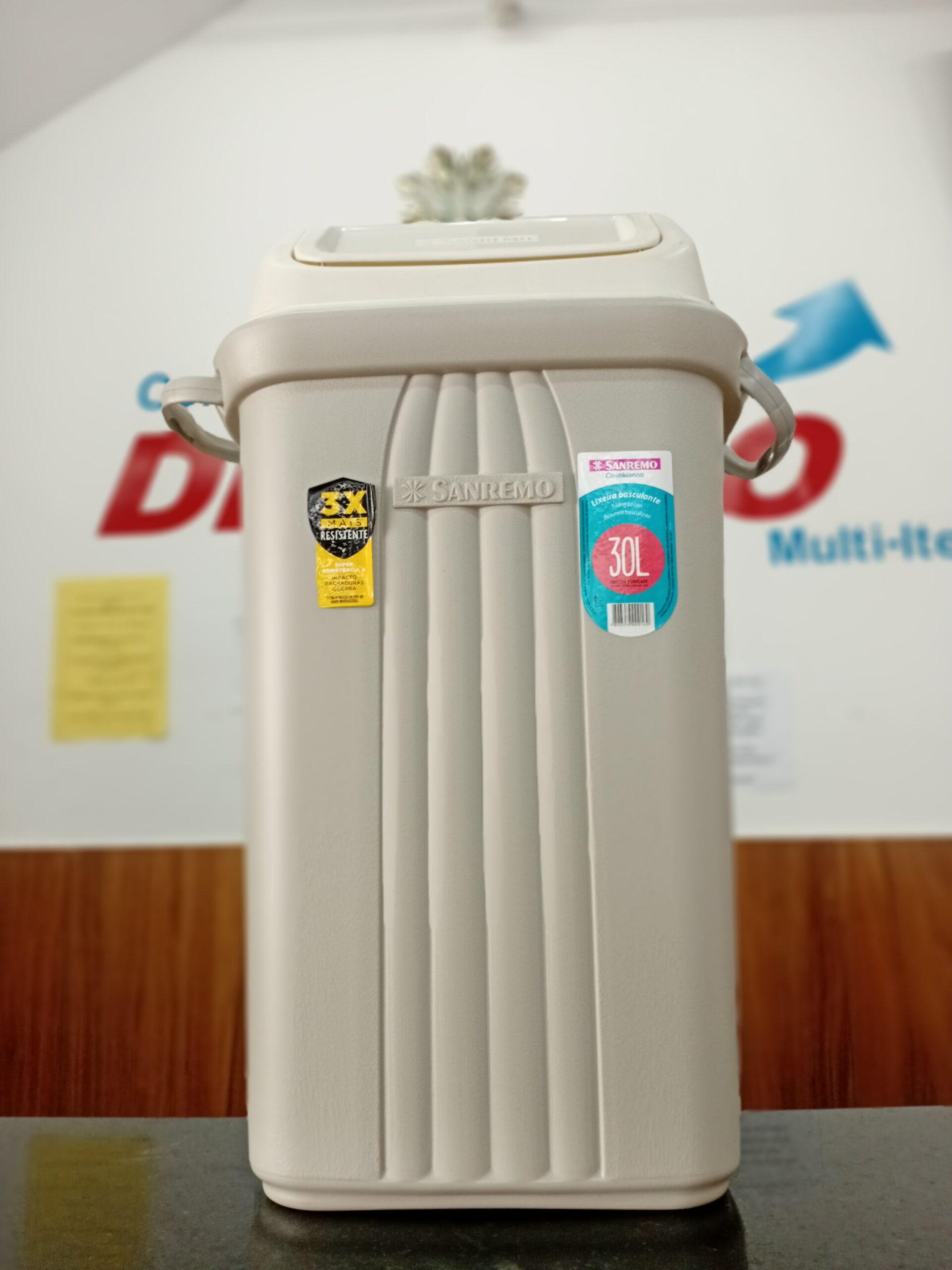 Lixeiras basculantes, disponíveis nos tamanhos 10, 30 e 60 litros.