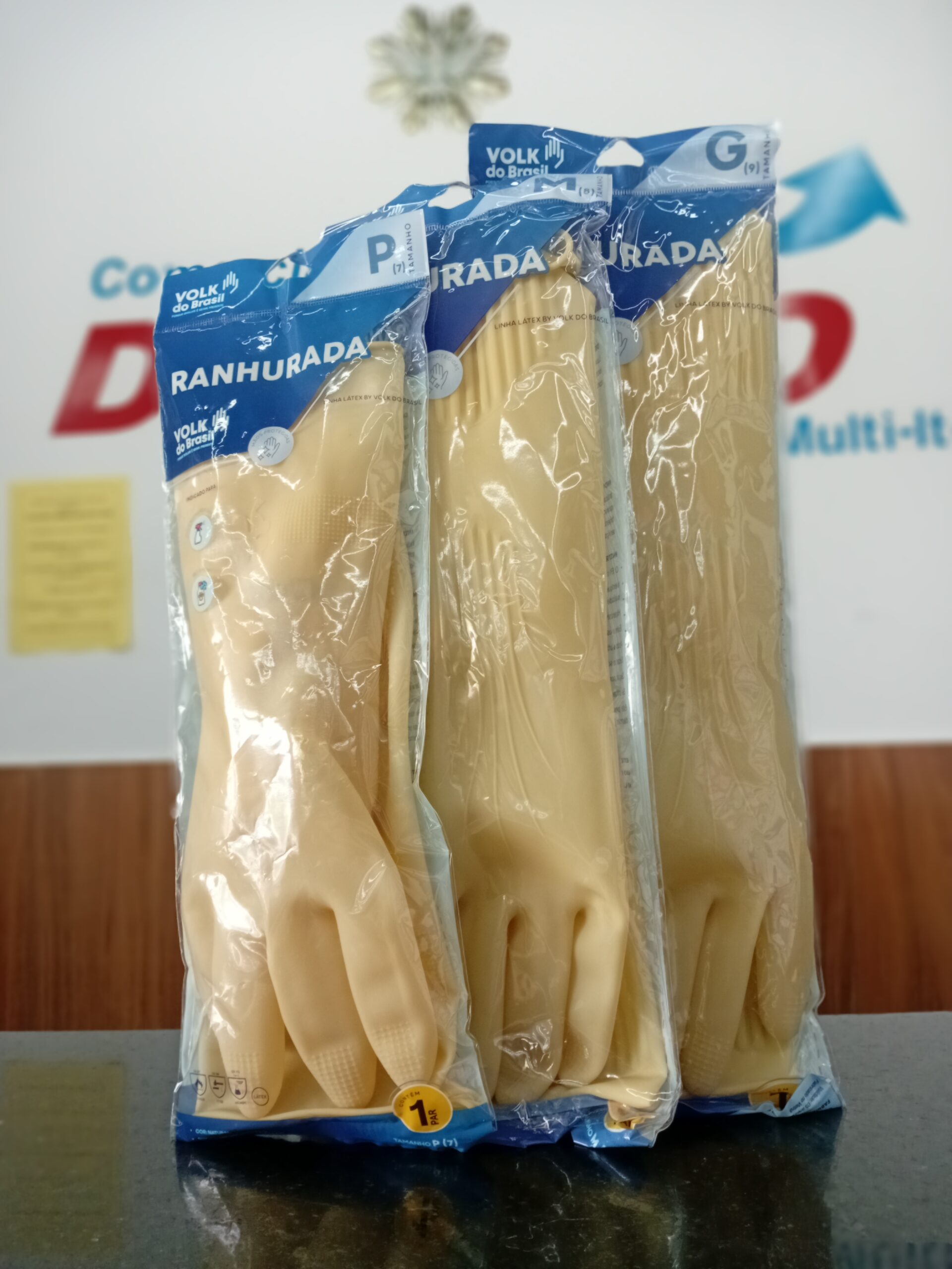 Luva de segurança confeccionada em borracha natural (látex) super reforçada; sem revestimento interno; antiderrapante na face palmar, nos dedos e na ponta dos dedos.