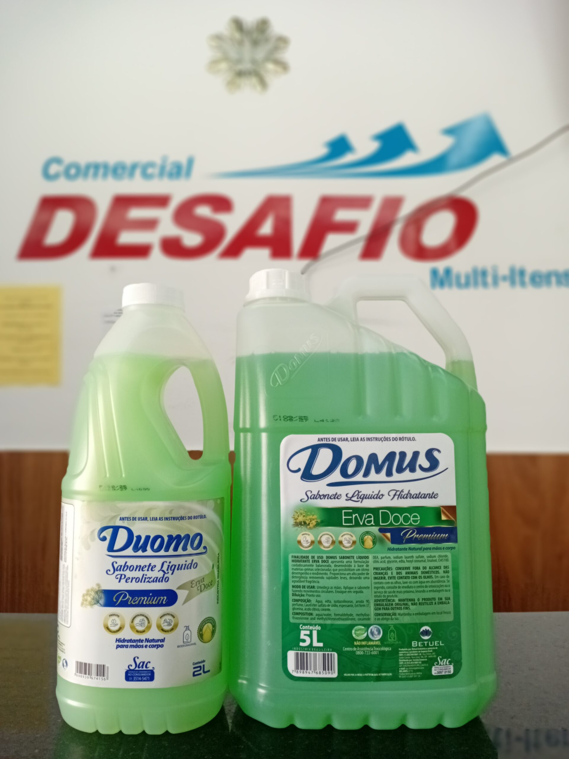Produto comercializado em galão de 5 litros nas fragrâncias: Erva doce, Pêssego, Talco.
