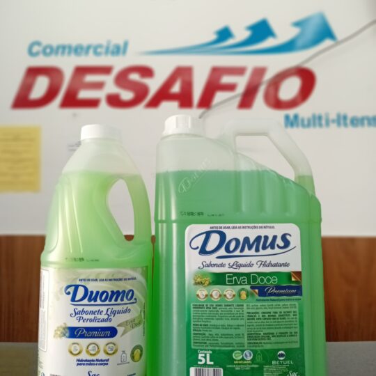 Sabonete líquido perolizado 2 e 5 litros. Fragrâncias: Erva Doce, Talco e Pêssego.